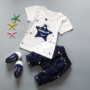ชุดเสื้อยืดเด็กสีขาวรูปดาว และกางเกงสีกรมท่า