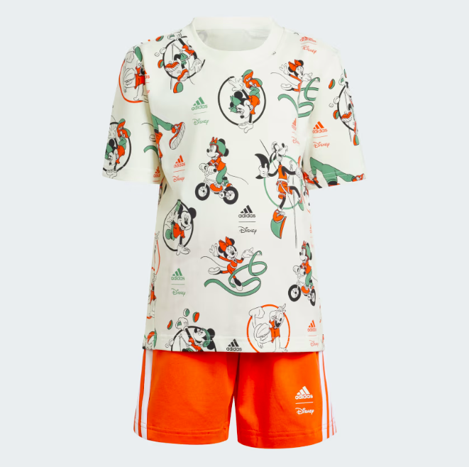 ชุดเสื้อยืดและกางเกงขาสั้นอาดิดาสสำหรับเด็กชุดนี้เฉลิมฉลองให้กับการแข่งขันกีฬาที่ยิ่งใหญ่ที่สุดของโลกไปกับ Mickey Mouse และผองเพื่อนมากพรสวรรค์ของเขา