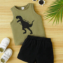 เสื้อกล้ามพร้อมกางเกงขาสั้น ลายไดโนเสาร์ สีเขียว