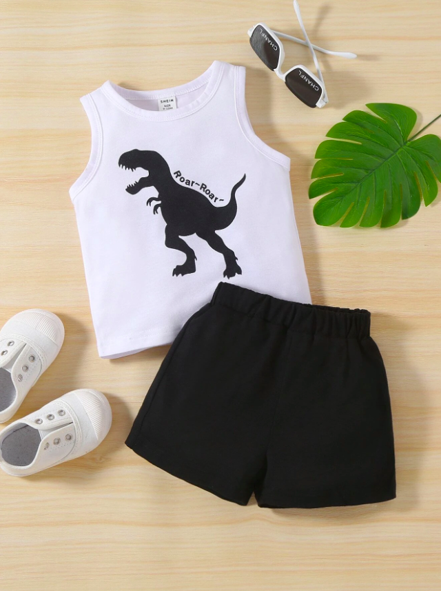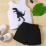 เสื้อกล้ามพร้อมกางเกงขาสั้น ลายไดโนเสาร์ สีขาว-ดำ