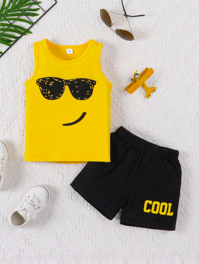 เสื้อกล้ามพิมพ์ลายพร้อมชุดกางเกงขาสั้น